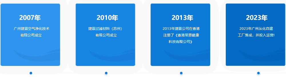 廣州捷霖空氣凈化技術有限公司創立于 2007 年, 是一家科技型中小企業和國家高新技術企業,2024年1月獲工信部國家級專精特新企業公司擁有30多項專利技術。深耕空氣凈化領域二十余年,是一家過濾材料、潔凈室環境技術及產品研發、制造、銷售和服務于一體的技術型企業。產品應用于軌道交通、汽車涂裝、半導體、微電子、AHU/MHU、新能源、生物制藥醫療、食品飲料、化工、工業廢氣、實驗室及畜牧業等。